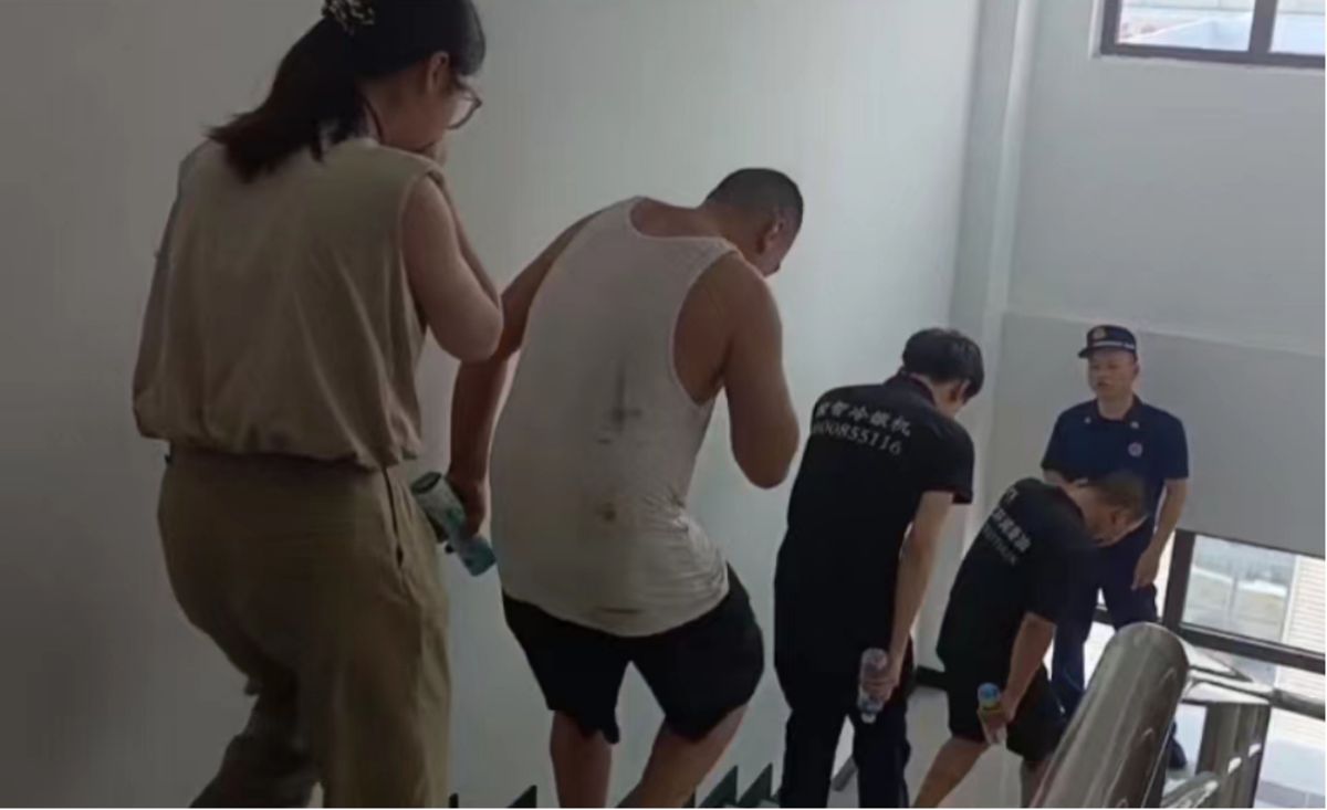 撤离演练准备工作做好后,随着消防警报声响起,全体员工消防疏散演练开始,何队进行指导,各部分负责人随后也在楼道就位,参加演练人员按照顺序排好队,全体员工用手帕或衣袖等捂着口鼻,猫着腰,靠墙有序地按指定路线“逃生”,负责人带着员工们有序地疏散到指定安全区域。整个撤离演练历时两分零七秒,做到了快速、安全、有序。